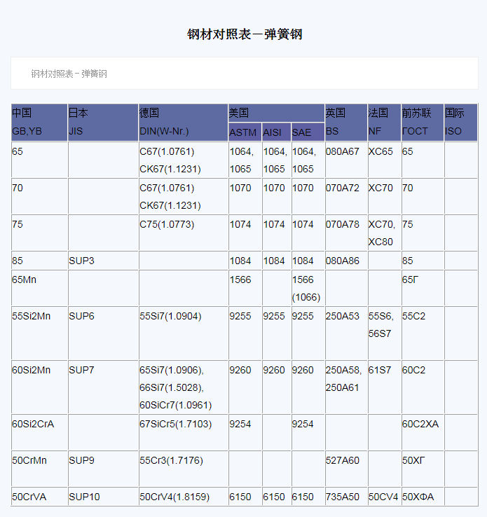 钢材对照表-弹簧钢